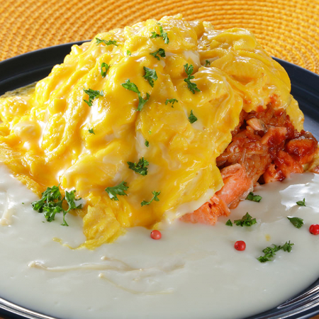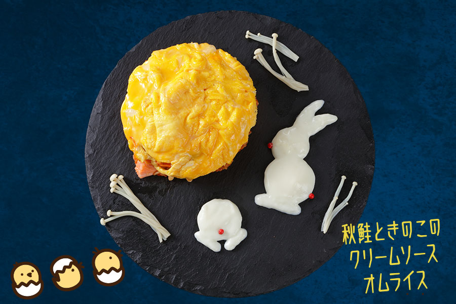 秋鮭 1切れ エノキ茸 1/2 パック 温かいご飯 1人分 たまご 1個 ケチャップ 大さじ1〜2 バター 10g 塩こしょう 少々