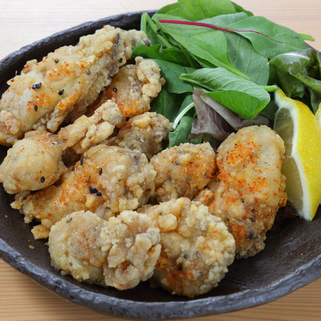 ※漬け液をふき取らずに粉を付けることで、七味をまとわせつつ、厚めに粉を付けることができるので、揚げ焼きでもカリッとした仕上がりになります。 ※かきは水分が多いので、粉は全体にしっかりと付け、油はねに注意して調理してください。