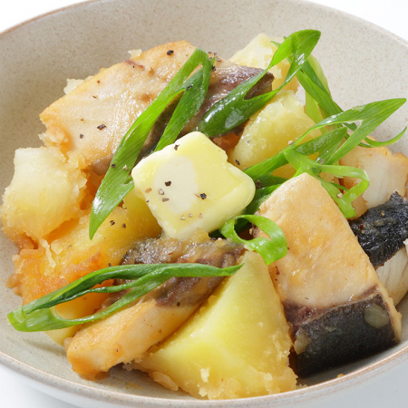 ぶり(切り身) 2切れ じゃがいも 2個 サラダ油 小さじ2 バター(またはマーガリン) 10g ねぎ(小口切り) 適宜 黒こしょう(粗びき) 適宜