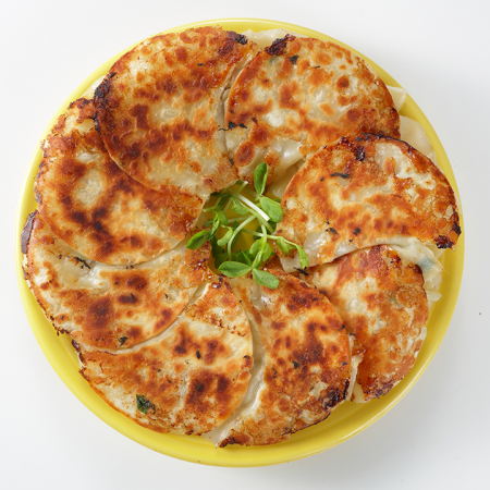 合いびき肉 150g キャベツ 2枚 にら 1/4束 餃子の皮 16枚 水 1/2カップ 「AJINOMOTO ごま油好きの純正ごま油」 大さじ1 「瀬戸のほんじお」 適量