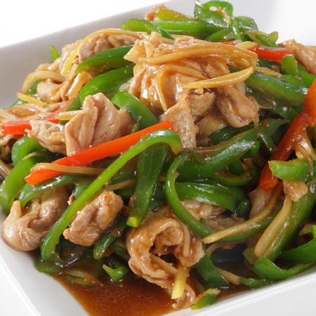 ピーマン、しょうがを細切りにし、豚肉はひと口大に切っておく。